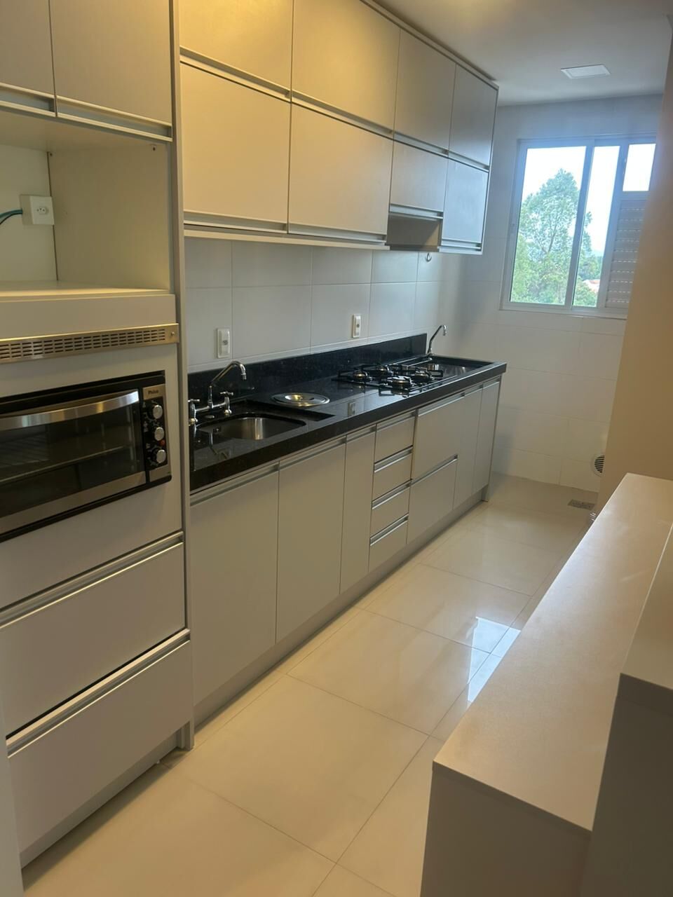 * Móveis sob medida na cozinha, área de serviço, banheiro, armário na suíte e fogão de modelo cooktop